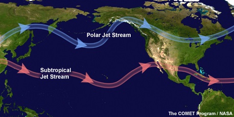 بیشتر اوقات در نیمکره شمالی و نیمکره جنوبی 2 نوع جت‌استریم داریم.