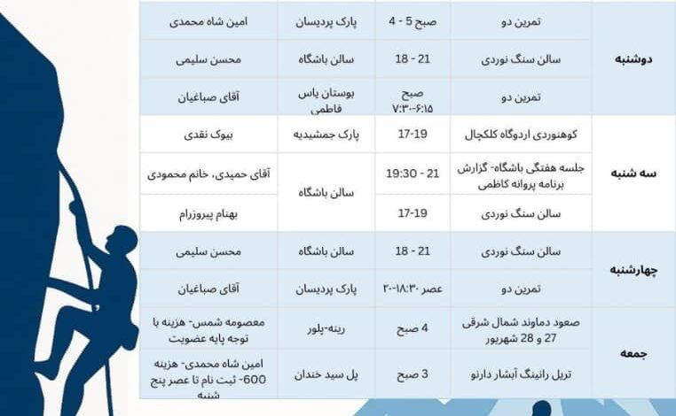 جدول برنامه های هفتگی باشگاه اسپیلت