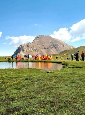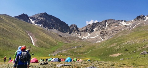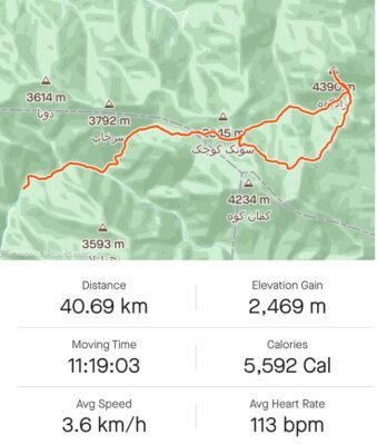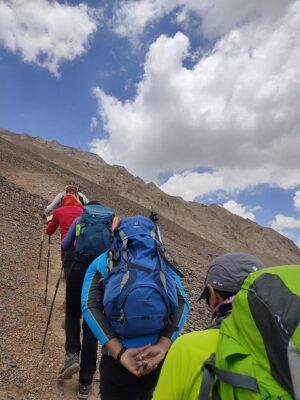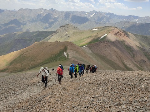 ♠مسیر صعود : دره وارنگرود – دره سوتک – دشت اول سوتک (پست محیط بانی) – گردنه کمان کوه به آزادکوه – ادامه پاکوب تا برکه زیبای کمان کوه و گذر از زیر قلل کمان کوه – سرماهو – یخچال تا گردنه چورن و قله آزادکوه به ارتفاع 4355 متر