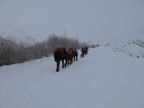 روز جمعه ساعت ۵:۰۰ صبح به همراه ۱۱ نفر از کوهنوردان باشگاه به سمت لواسان و افجه حرکت کردیم، برف سنگینی در حال باریدن بود و این بارش تا دشت هویج هم ادامه داشت و این باعث شد که حرکتمان به کندی صورت بگیرد.