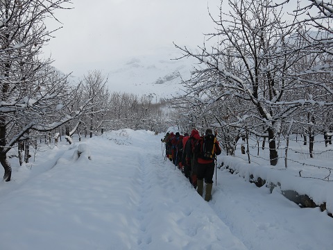 از دشت هویج تا دشت سوئک در فصل تابستان حدود ۲۰ دقیقه طول میکشد که این مسیر را طی کنید. اما به علت حجم برف زیاد و تازه و با وجود اینکه همه نفرات تیم با قدرت و سرعت برفکوبی میکردند، حدود ۱ ساعت و نیم طول کشید که ما این مسیر را پیمایش کنیم.