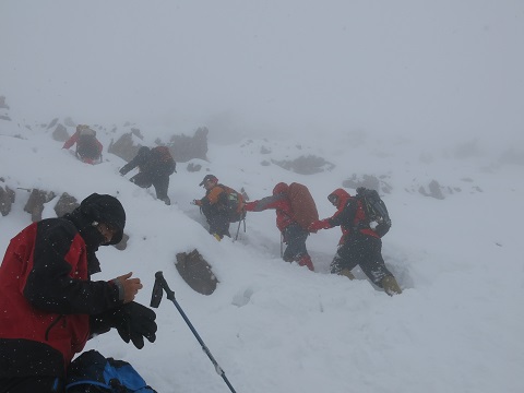 در آنجا با شیب بسیار تند و حجم زیاد برف و نداشتن دید کافی روبرو شدیم و تا نزدیکهای یال اصلی در ارتفاع حدود ۳۰۰۰ متری تلاشمان را ادامه دادیم. اما به علت ترک خوردن بهمن در کنارمان از ادامه مسیر منصرف شده و تصمیم به بازگشت گرفتیم.