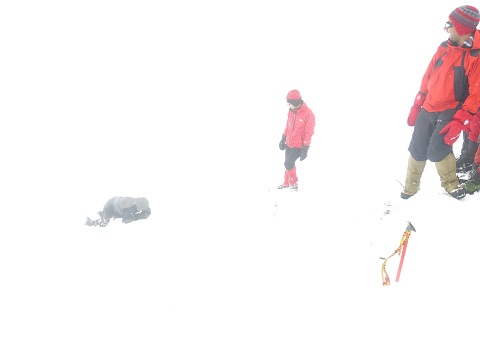شرایط جوی به گونهای بود که همراه با بارش برف، مه غلیظی در منطقه حاکم بود. به طوری که شعاع دیدمان به بیشتر از ده متر نمیرسید و فقط در بعضی مواقع به مدت کوتاهی ابرها منطقه را ترک میکردند.