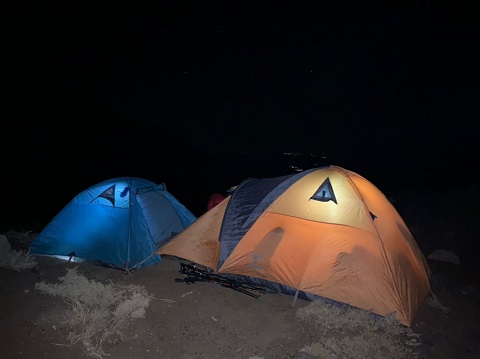 با تلاش بچه ها دوتا جای چادرپیدا می شود که پس از جابه جا کردن سنگ های ریزچادرها را بر پا کردیم.