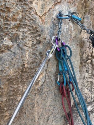 سه کُرده دو نفره شدیم و مسیر تنوره با درجه سختی ۵،۱۰a استارت زدیم.