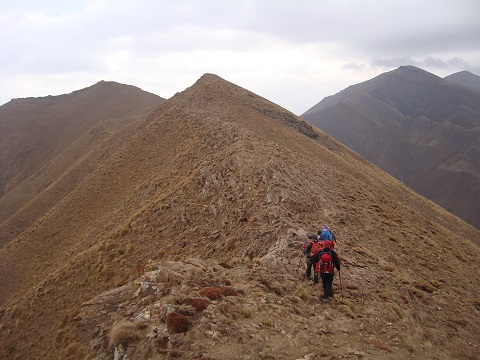 بعد از یک ساعت در ابتدای یال صعود برای صرف صبحانه توقف داشتیم . بهترین یال صعود پرسون ، قبل از وارد شدن به دشت هویج ، سمت راست (شرق) مشخص میباشد.