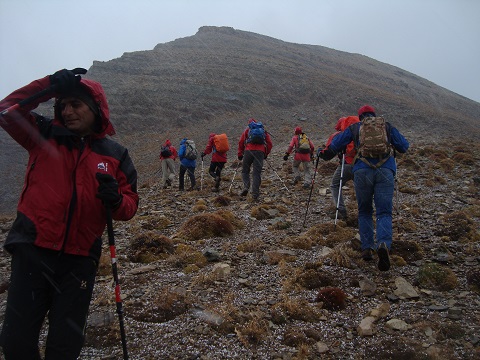 در ساعت 12:30 در حالی که هوا کاملا مهآلود بود به قله ریزان به ارتفاع 3600 متر دست یافتیم .
