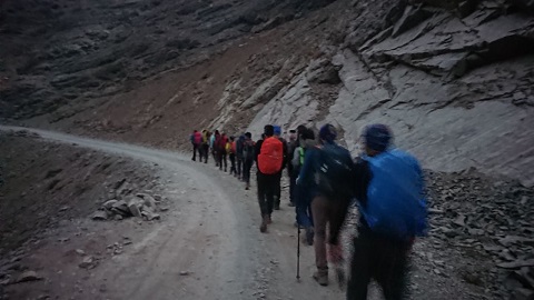 5 نفر از اعضای تیم اول بعد از یک ساعت از میان صخره‌ها و شیب‌های برفی عبور کرده و به گردنه‌ای رسید که به زین‌اسبی مشهور است.