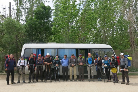 پس از یک و نیم ساعت به یک جاده خاکی عشایری به طول ۴ کیلومتر رسیدیم که پس از طی آن در ساعت ۱۸:۳۰ با رسیدن به اتومبیل و رانتده ون باشگاه که در آنجا منتظرمان بود به طرف تهران حرکت کردیم و این برنامه با صعود سه قله به پایان رسید.