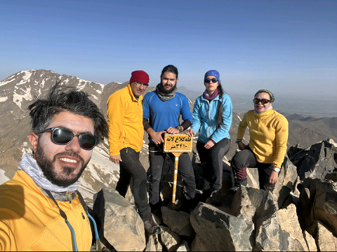 ساعت ۱۶ بر روی این قله به ارتفاع تقریبی ۳۴۵۰ متر عکس یادگاری را ثبت کرده از یال سنگی و غربی قله به طرف دو پناهگاه زیر قله کلاغ لان فرود رفتیم و شب برنامه را در پناهگاه دوم که بسیار مرتب و پاکیزه بود به صبح رساندیم.