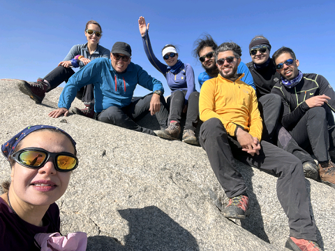 در آنجا پس از کمی استراحت به طرف تخت نادر حرکت کرده سپس از روی یال شمالی به طرف قله سنگی الوند صعود کردیم.