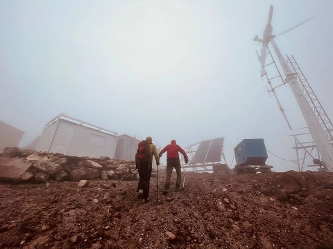 بر روی این قله تاسیسات فراوان مخابراتی هست در ضمن در ارتفاع ۳۱۰۰ متری نیز یک آنتن و کانکس وجود داشت. متاسفانه به دلیل مه شدید تیم موفق نشد دهانه آتشفشانی روی قله را مشاهده کند.
