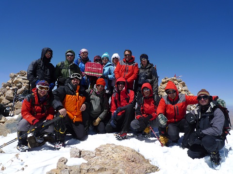 در ساعت ۱۲:۰۰ به اتفاق تمامی نفرات تیم (۱۵ نفر) به قله دست یافتیم و ارتفاع آن را با GPS 3965 متر (تقریباً همارتفاع قله توچال) ثبت نمودیم.