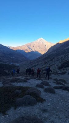 مسیر فرود از سمت شمالی با دور زدن کامل قله و رسیدن مجدد به پاکوب دره اصلی انجام گرفت.