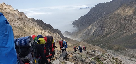 حدود ساعت 4 صبح روز بعد ، تیم اول به تعداد 5 نفر به سرپرستی محسن سلیمی راهی صعود مسیر فنی گرده آلمان ها شدند و ساعت 6 صبح تیم دوم به قصد صعود قله علم کوه از مسیر سیاه سنگ ها کمپ شب مانی را ترک کردند.