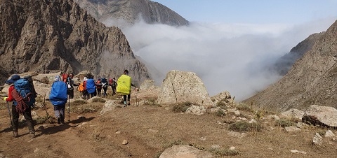 پس از آماده شدن ، ساعت 12 کوهپیمایی را شروع کردیم و پس از عبور از مسیر پاکوب و بسیار زیبایی که با حمل کوله ها توسط اعضای تیم انجام می شدساعت 18 به پناهگاه و منطقه سرچال در ارتفاع 3700متری زسیدیم.