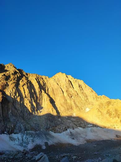 شنبه ۲۸ مرداد؛ خوشحال از تصمیم درستی که گرفته بودیم صبح به راحتی و با روحیه بالا پس از گذراندن ۳ طول ریزشی ساعت ۹ از دیواره با سلامت کامل بیرون آمدیم و پس از گرفتن عکس قله خیلی سریع به سمت سیاه سنگ ها حرکت کرده و فرود آمدیم و ساعت ۱۴ به کمپ مان در علمچال رسیده و بدون معطلی کمپ را جمع کرده و ساعت ۱۷ به پناهگاه سرچال رسیدیم،