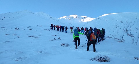 تیم 8 نفره ی ما موفق شد مسیر سوم را در روزجمعه، 3 مهر ماه طی 6 ساعت صعود کند. هوایی که آن روز داشتیم خنک و پاییزی بود بویژه آن که روز قبل باران و برف باریده بود و ما در هوایی فرح بخش صعود می کردیم.