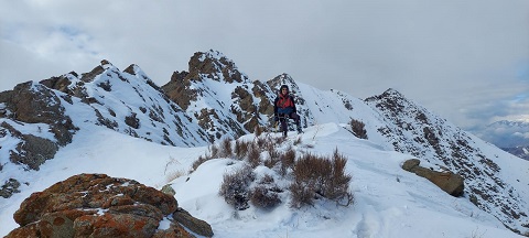 ابتدا در بخش جنوبی تیغه ها حرکت کردیم که تقریباً خشک و بدون برف بود اما کمی که ادامه دهیم مسیر کور میشود و باید به روی خط الرأس و سپس بخش شمالی رفت.
