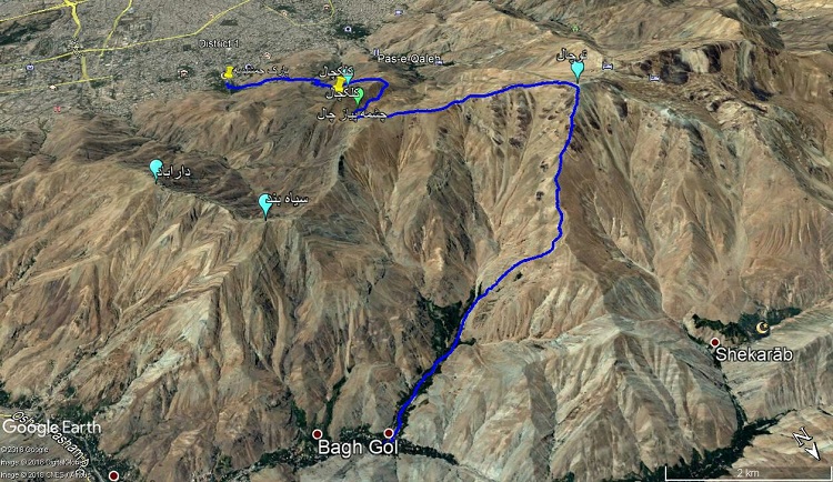 ابتدای مسیر، جاده یک کیلومتری باغات گرمابدر از ضلع جنوبی جاده (قبل از پست محیط بانی) شروع می شود.