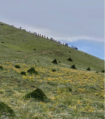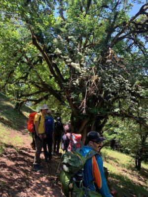 از ابتدای مسیر صعود در ارتفاعات پایین تا انتهای مسیر صعود ما شاهد پوشش گیاهی«گزنه، سروکوهی، تنوع گلهای بابونه و …» و انبوه درختان کهنسال و منحصربهفرد(هیرکانی) بودیم که در نهایت در حدود ۳۰۰ متر مانده به قله درختان این مخزن طلای سبز به پایان رسید.