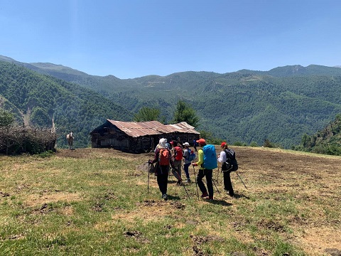 در ادامه به مکانی رسیدیم که بنایی ساخته شده از چوب بود قرار داشت و بدان تلار میگفتند و در ارتفاع پایین تر از آن چشمهای قرار داشت که توانست کمبود آب اعضای گروه را تامین کند.